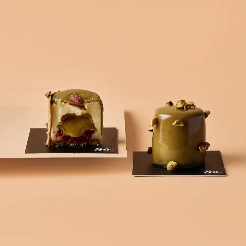 pistachio paste, cherry compote, pistachio mousse made with pistachio paste…