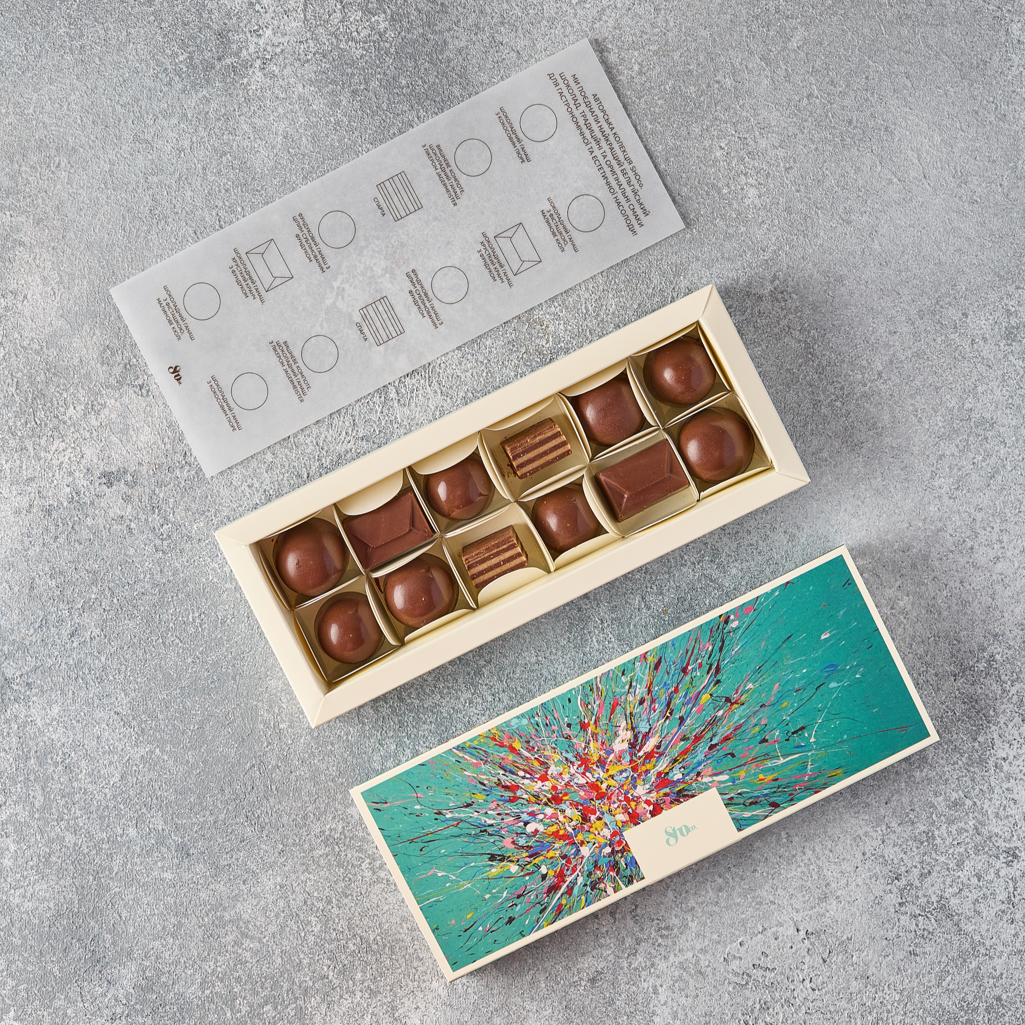 candy flavors: cherry compote with “Jägermeister” liqueur; pistachio-raspberry; hazelnut ganache,…