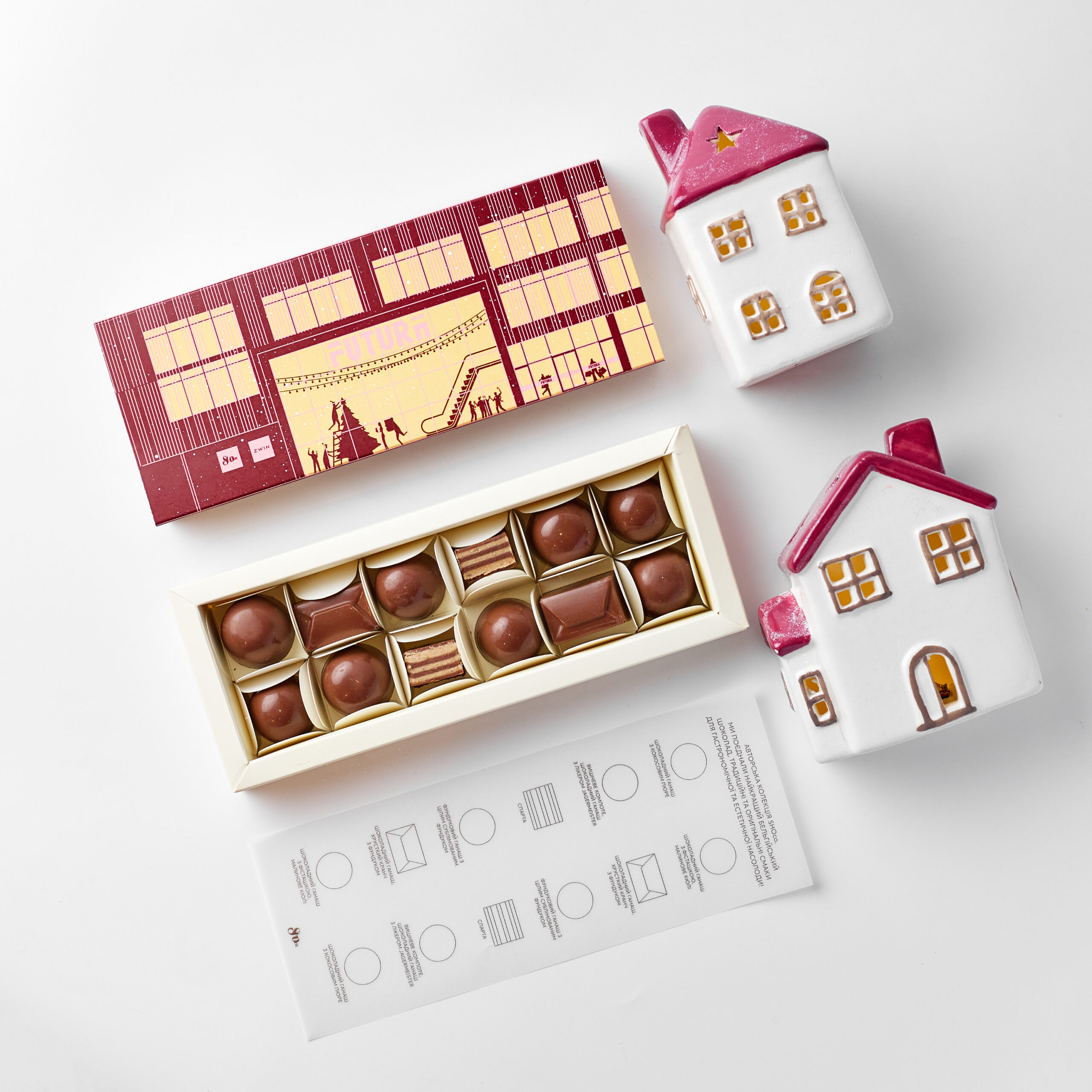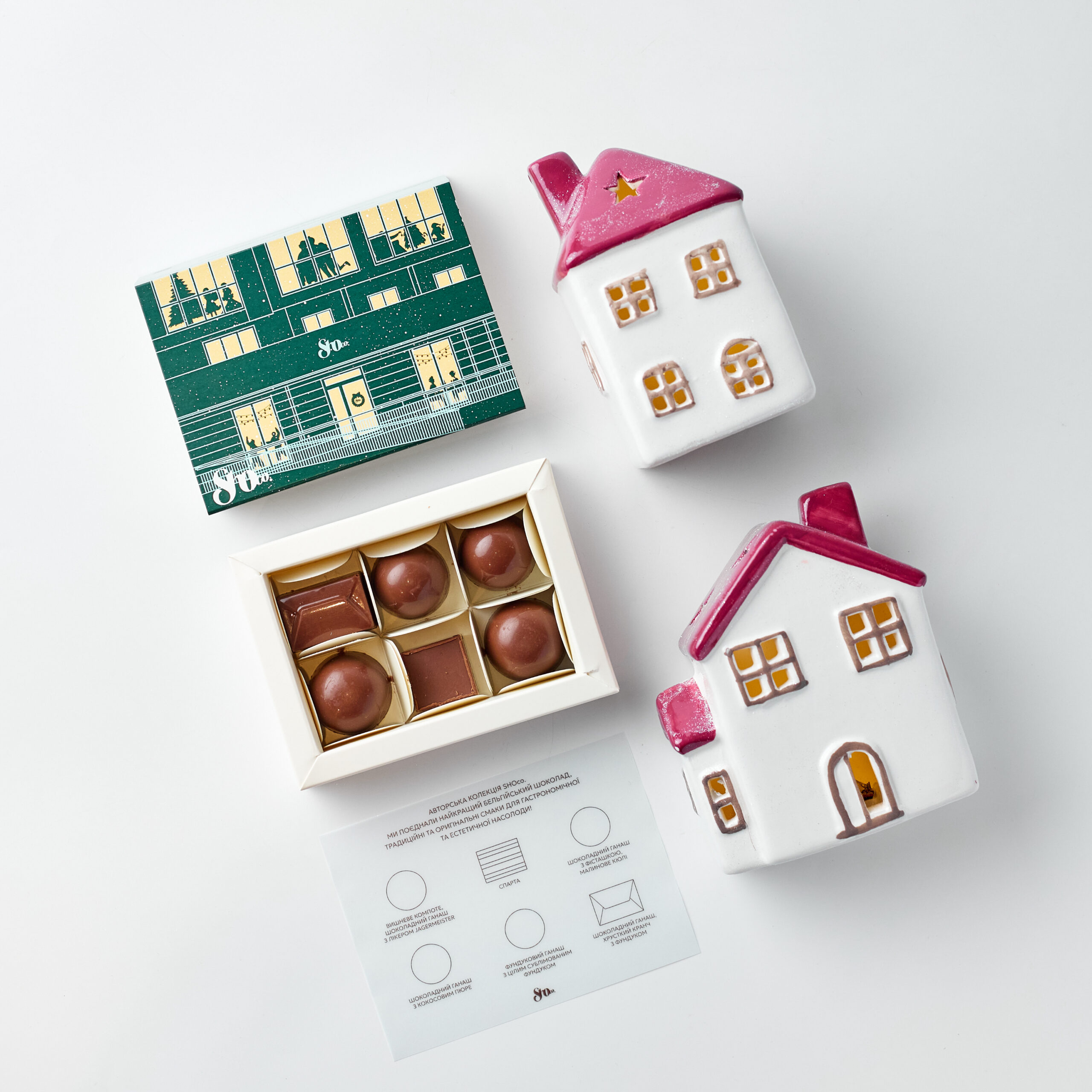 candy flavors: cherry compote with “Jägermeister” liqueur; pistachio-raspberry; hazelnut ganache,…