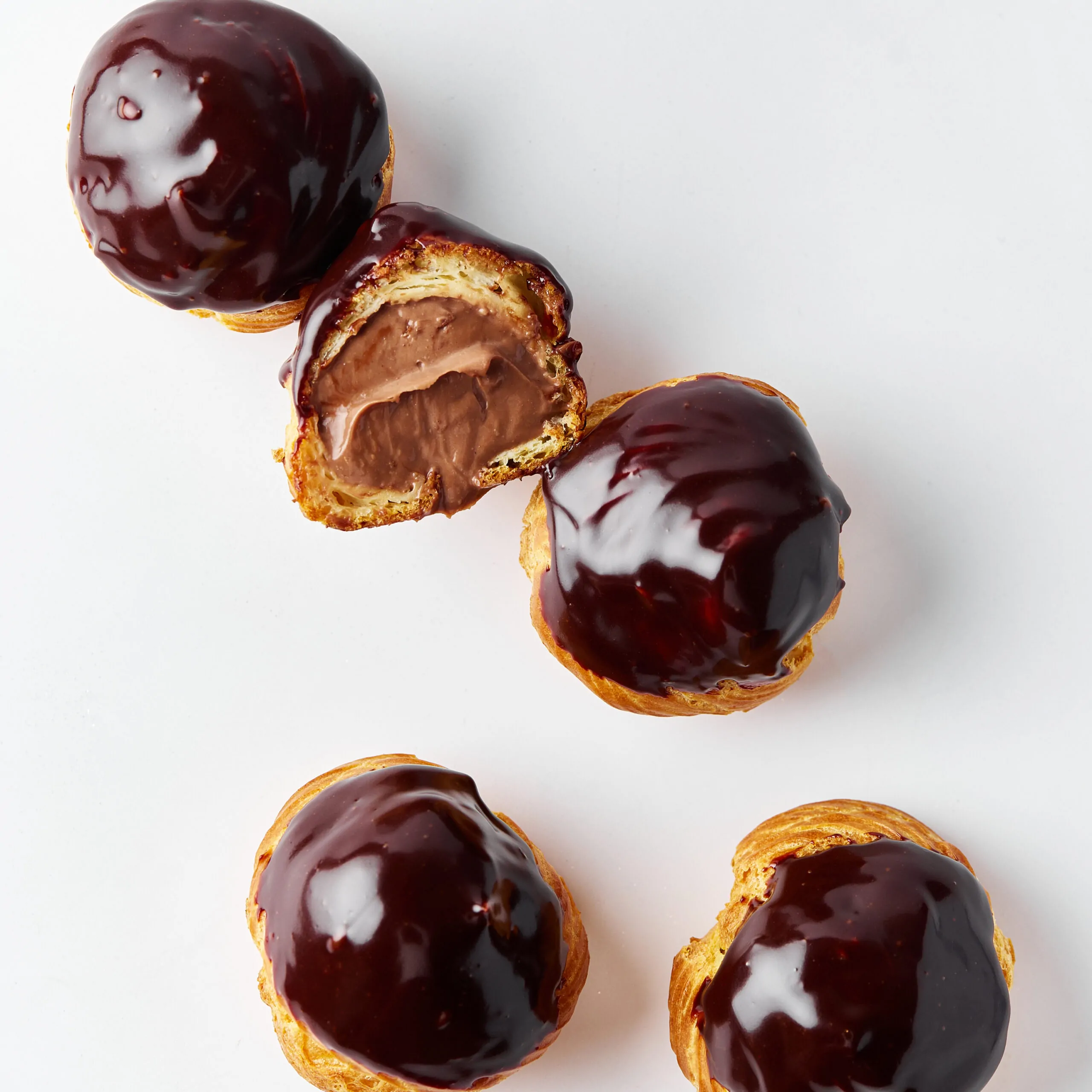 black chocolate custard cream, chocolate glaze