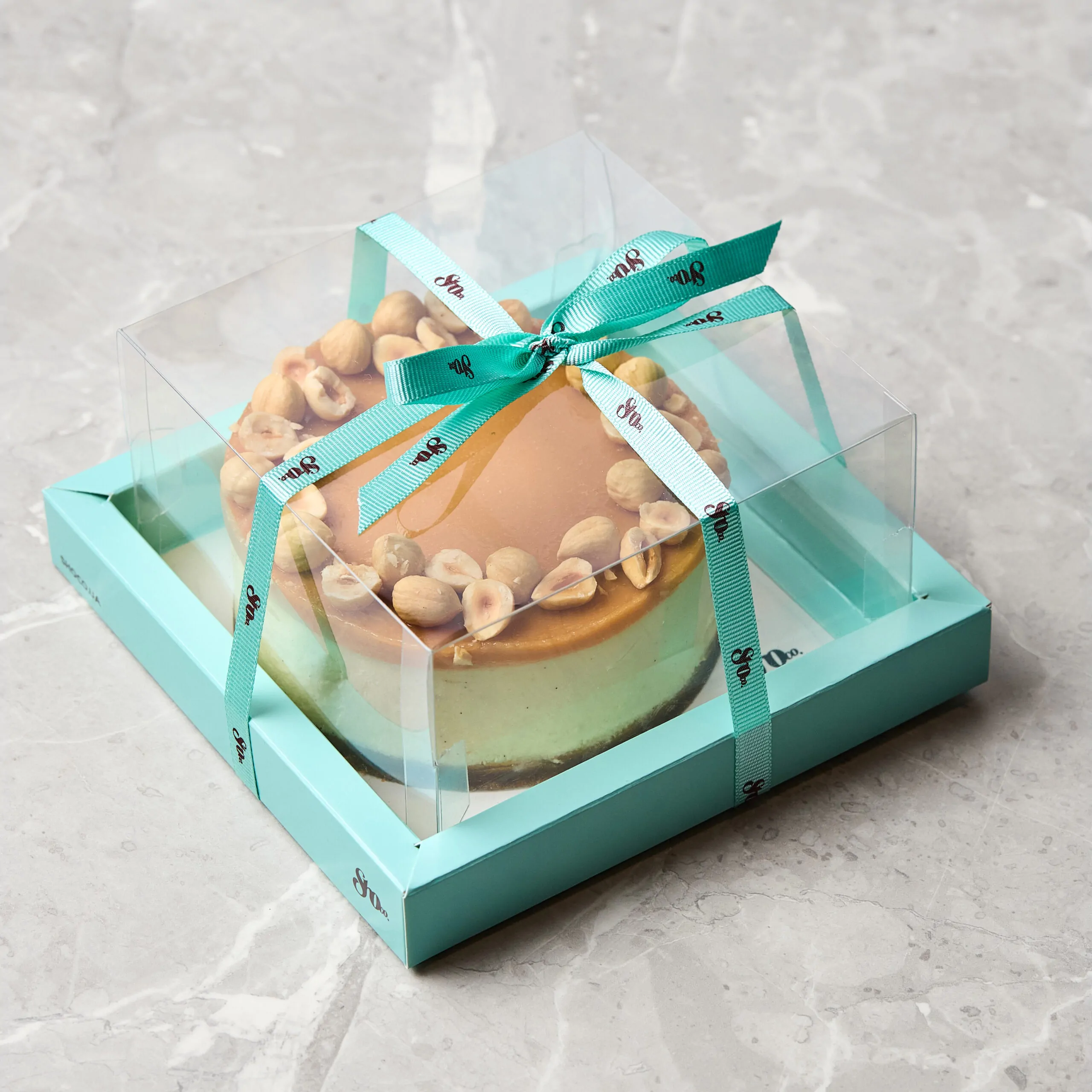 shortbread base, Philadelphia cheese, Mascarpone cheese, homemade caramel, hazelnuts