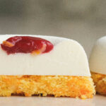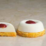 моркв'яний бісквіт, мус на основі білого шоколаду та сиру Філадельфія, малинове конфі