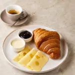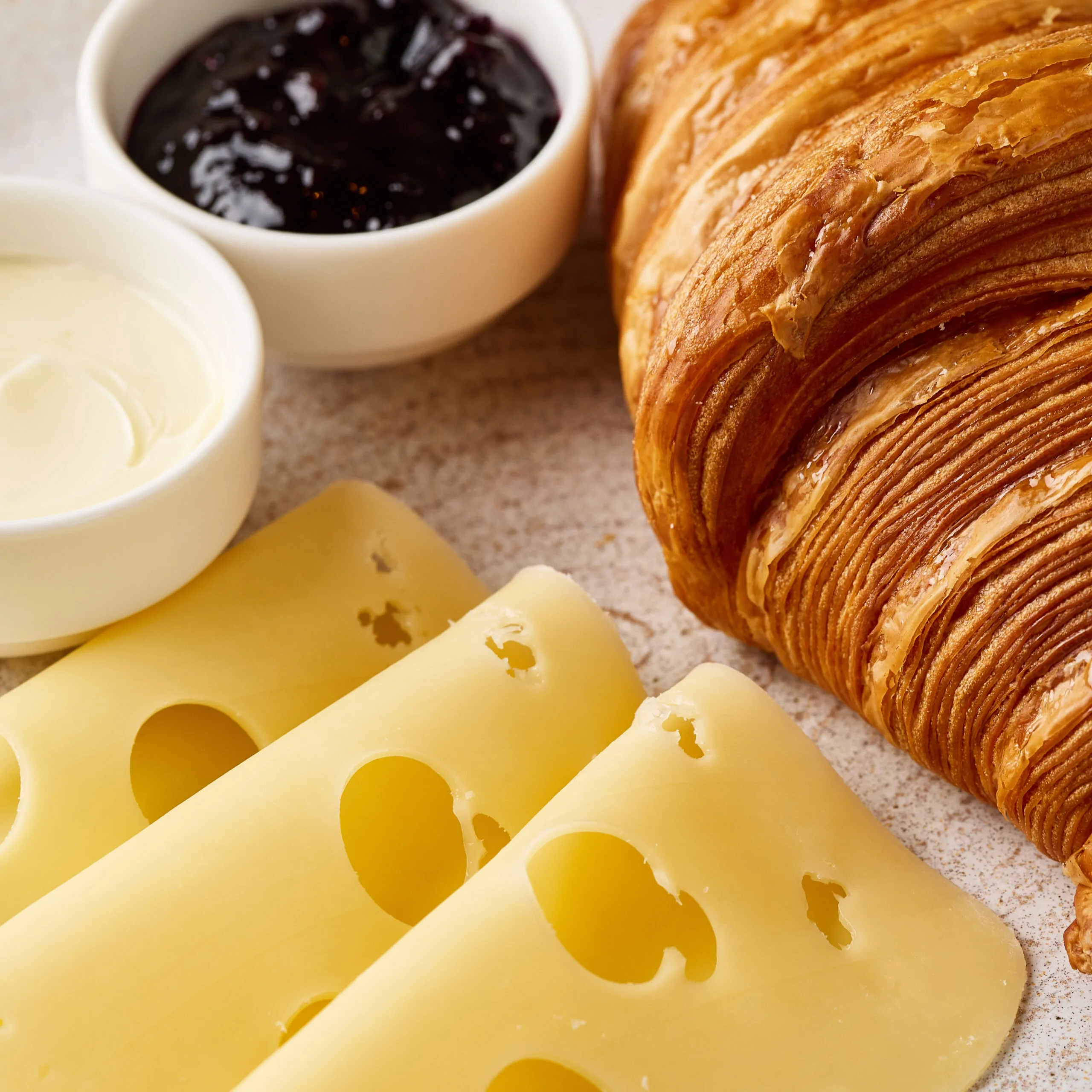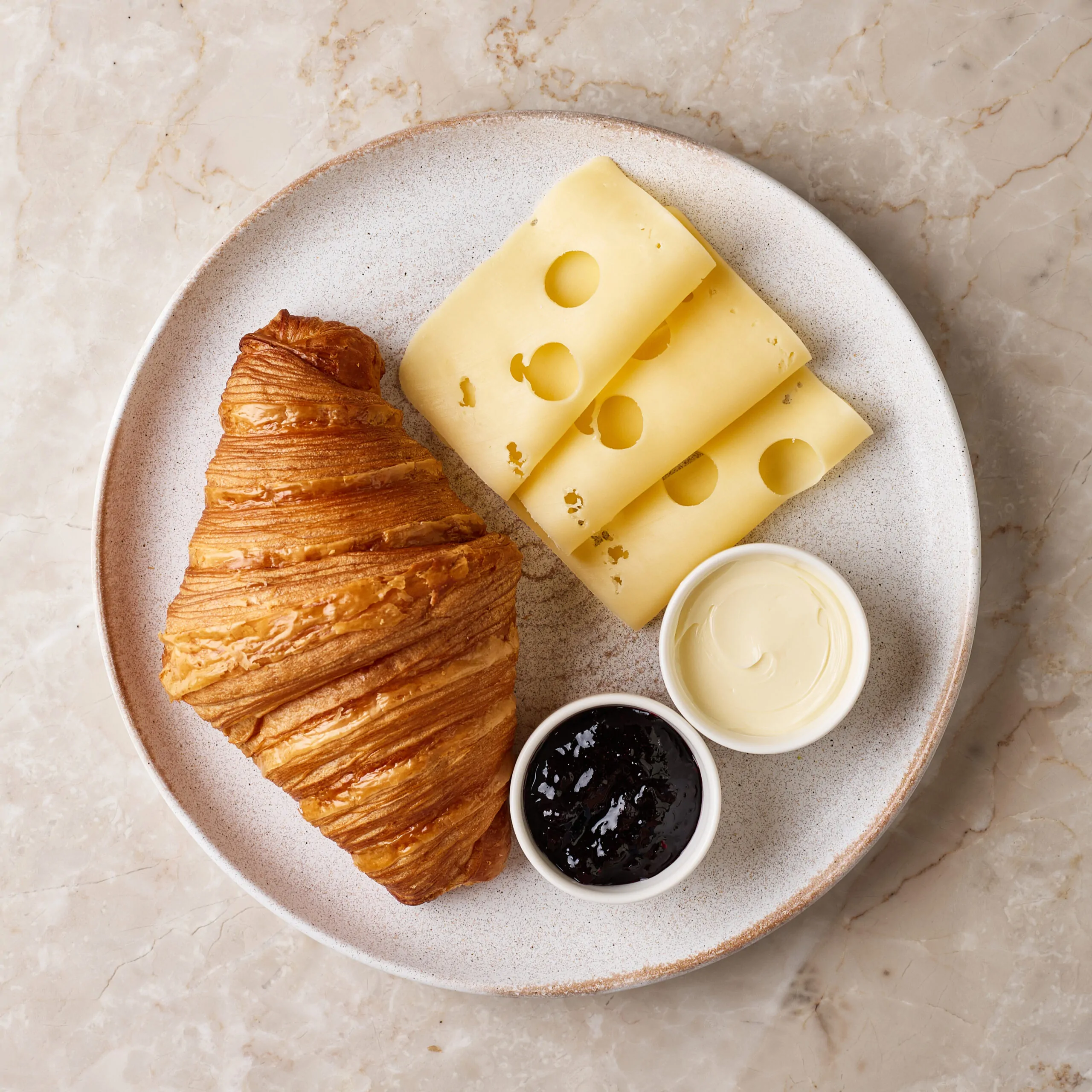 круасан класичний, сир Ементаль, смородиновий джем, масло