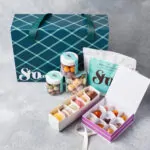 святковий сет 6 макарон, кава у зернах, набір мінімакарон, горіхове драже, ягідне драже, сет авторських цукерок
