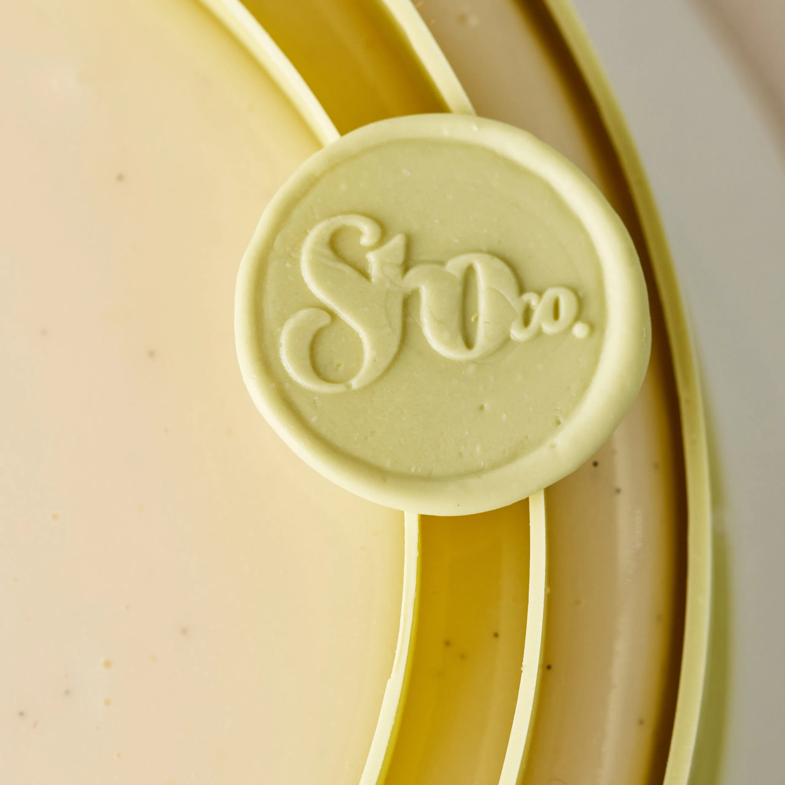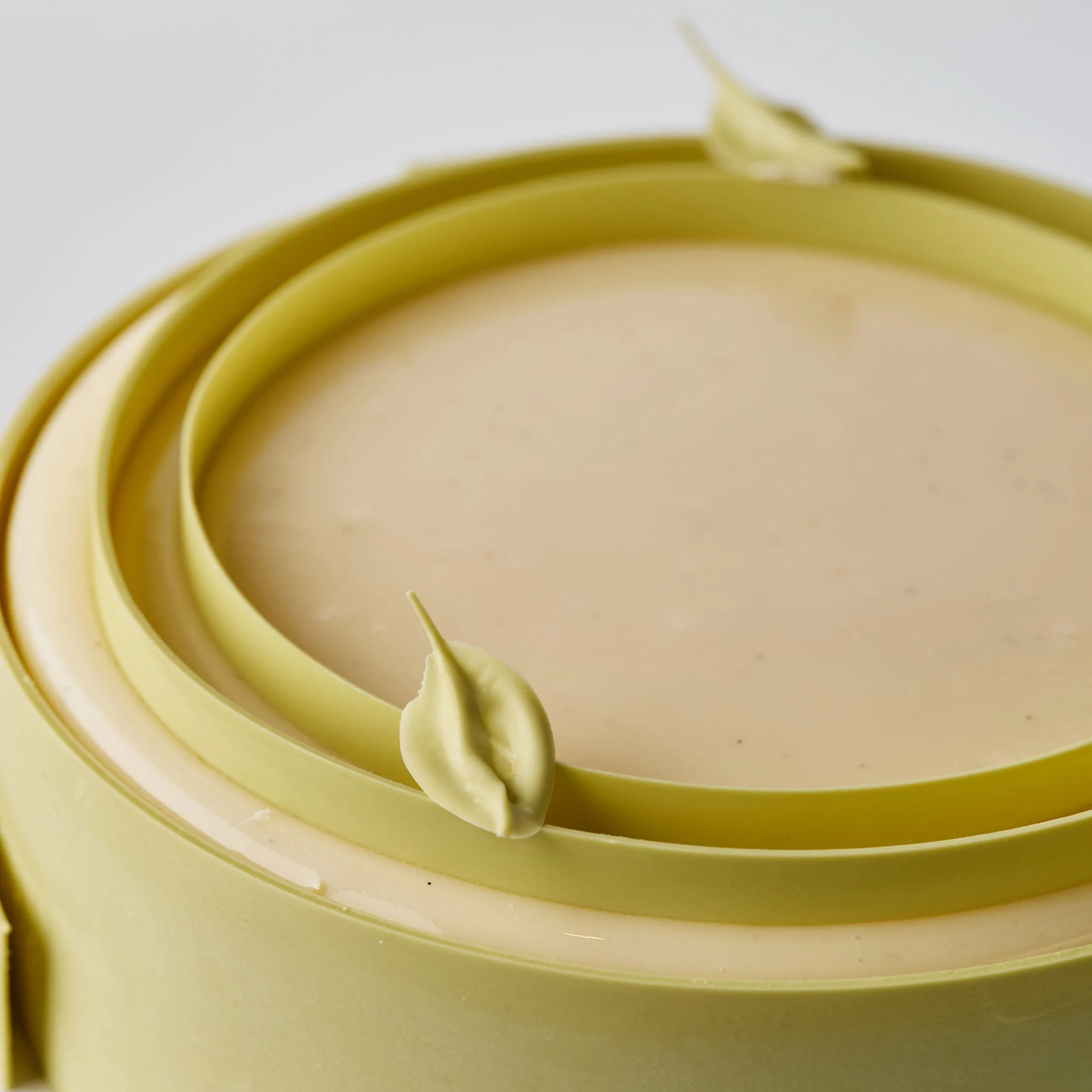 Ванільний бісквіт, йогуртовий мус на основі білого шоколаду з сиром Маскарпоне, ягідний хрусткий прошарок, лаймове кремю, полуничне компоте