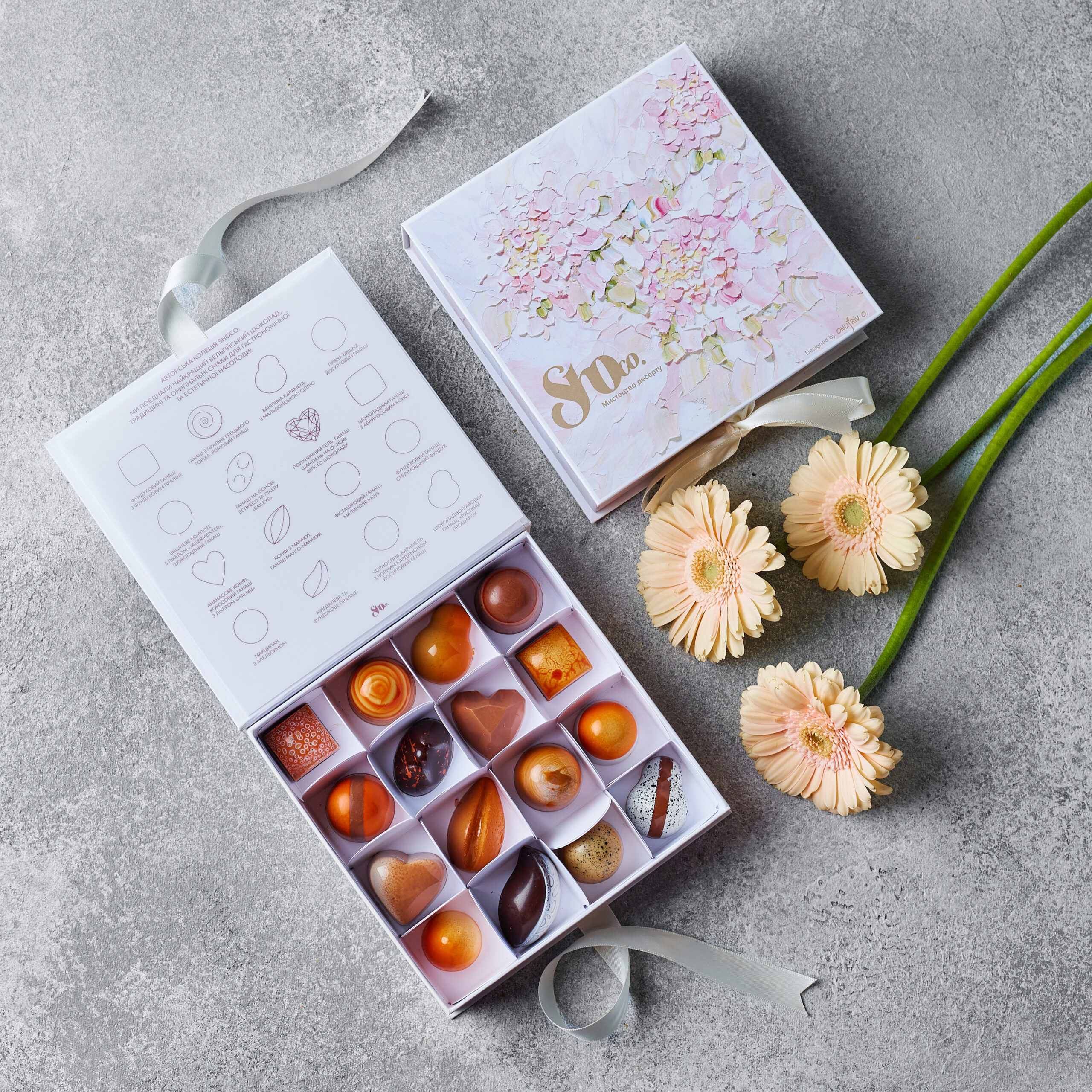 коробочка з 24-х макаронів у дизайнерській коробочці з принтом