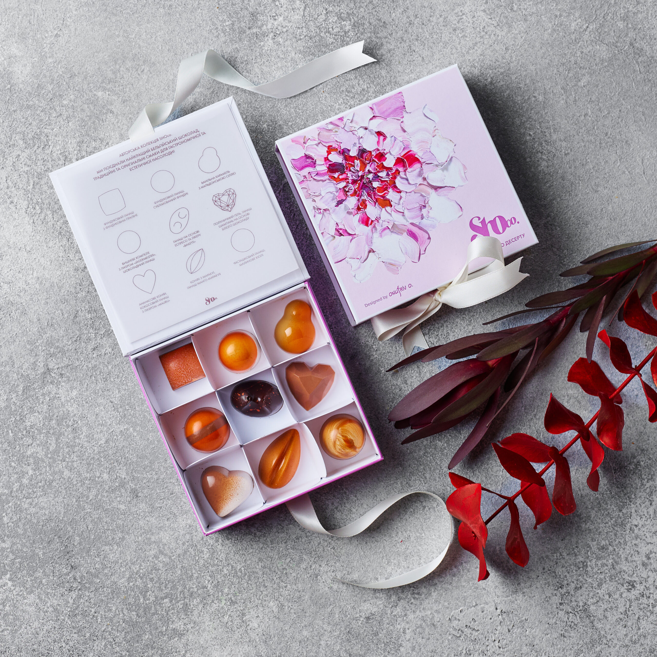 фундуковий ганаш з фундуковим праліне; фундуковий ганаш, сублімований фундук; ванільна…
